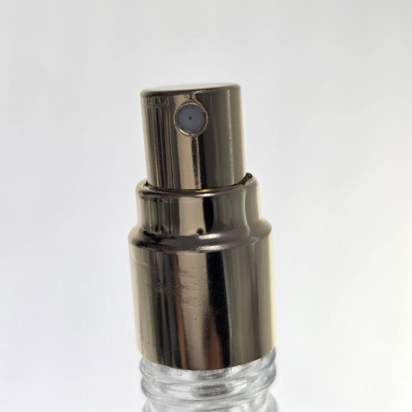 Válvula vaporizadora revestida em alumínio, utilizada para perfumes, aromatizadores em spray, água perfumada, repelente de insetos, e outras soluções de base alcóolica.