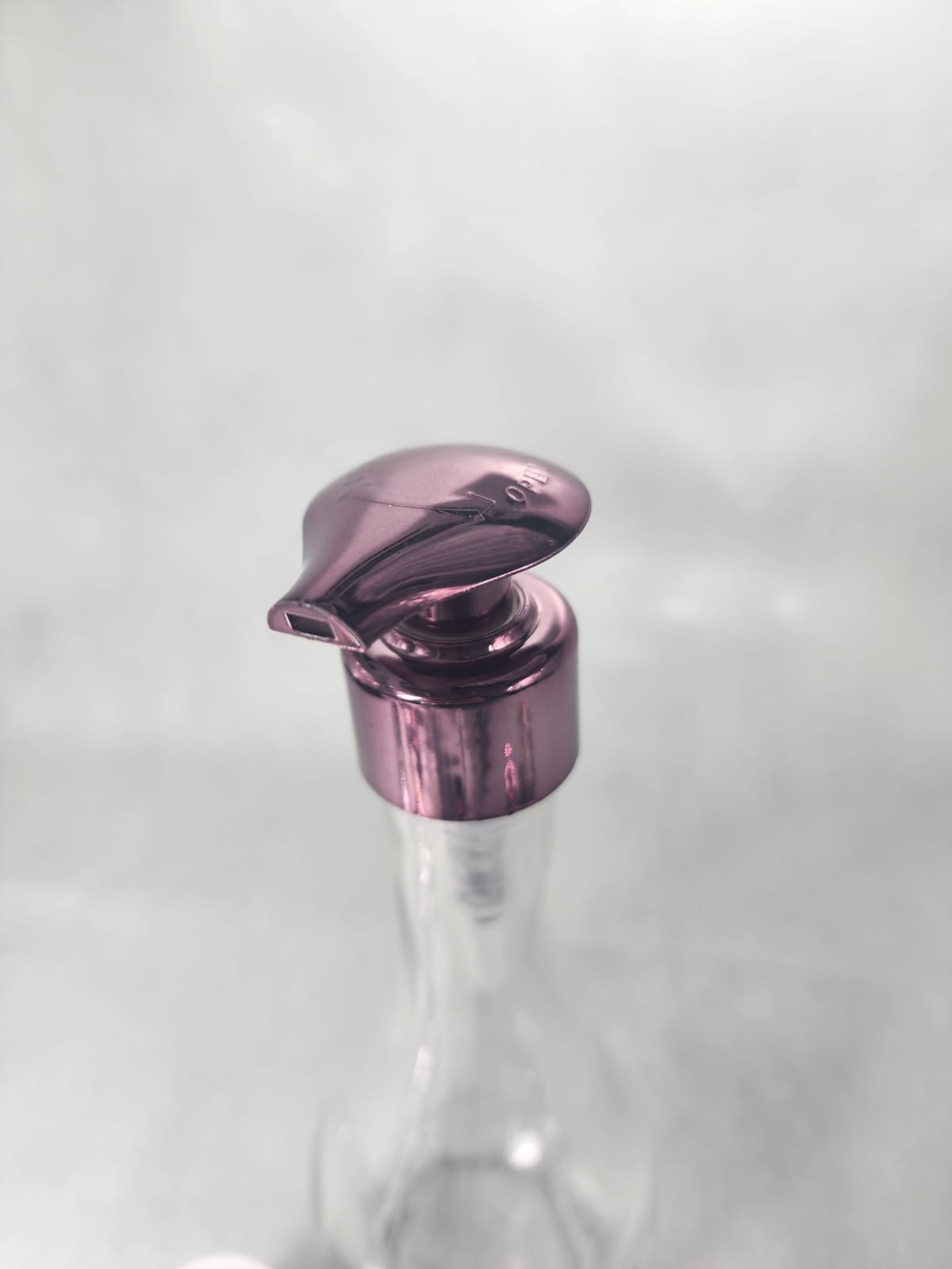 Válvula tipo bico de pato em plástico metalizada, possibilita a utilização de produtos densos em pequenas doses, para uso em sabonetes líquidos, água micelar, demaquilante, loções hidratantes, cremes corporais, géis, shampoo, condicionador, álcool em gel, caldas, detergente de louças,